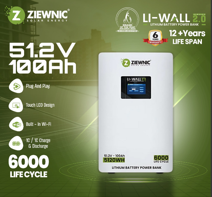 Ziewnic Li Wall 2.0 Lithium 48V 100Ah Power bank 6 Year Warranty